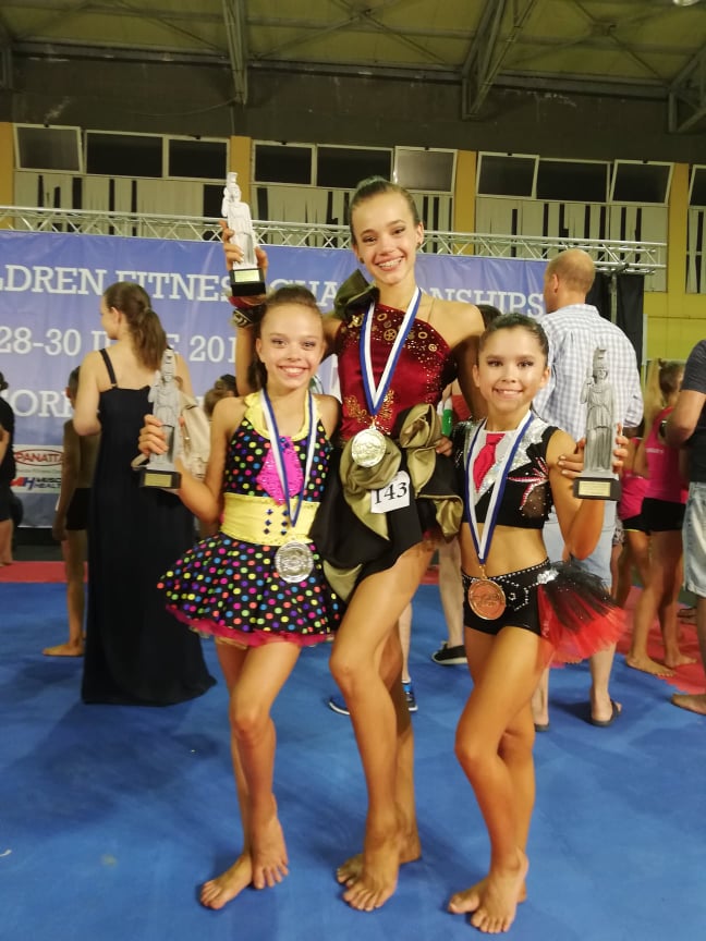 Tento víkend od 28.- 30.6. žiačky našej ZUŠ PinkHarmony – fitnesky Alexandra Uhrinová, Diana Nguyen Xuanova a Nelli Novodomská reprezentovali Slovensko na Majstrovstvách sveta na ostrove Korfu. Sme na ne právom pyšní, lebo vo veľkej konkurencii pre nás vybojovali 2x titul majsterky sveta a 1x titul vicemajsterky sveta. Alexandra získala striebornú medailu v kategórii dievčat do 9 rokov, Diana zlatú medailu v kategórii 10 ročných dievčat a Nelli v najstaršej kategórii dievčat do 15 rokov získala zlato. Nelli sa to podarilo 8-krát za sebou aj na európskom, aj na svetovom poli a tak sa ako jediná fitneska pýši titulom 8-násobnej majsterky sveta a 8-násobnej majsterky Európy. Zo srdca dievčatám gratulujeme a prajeme krásne prázdniny 😊