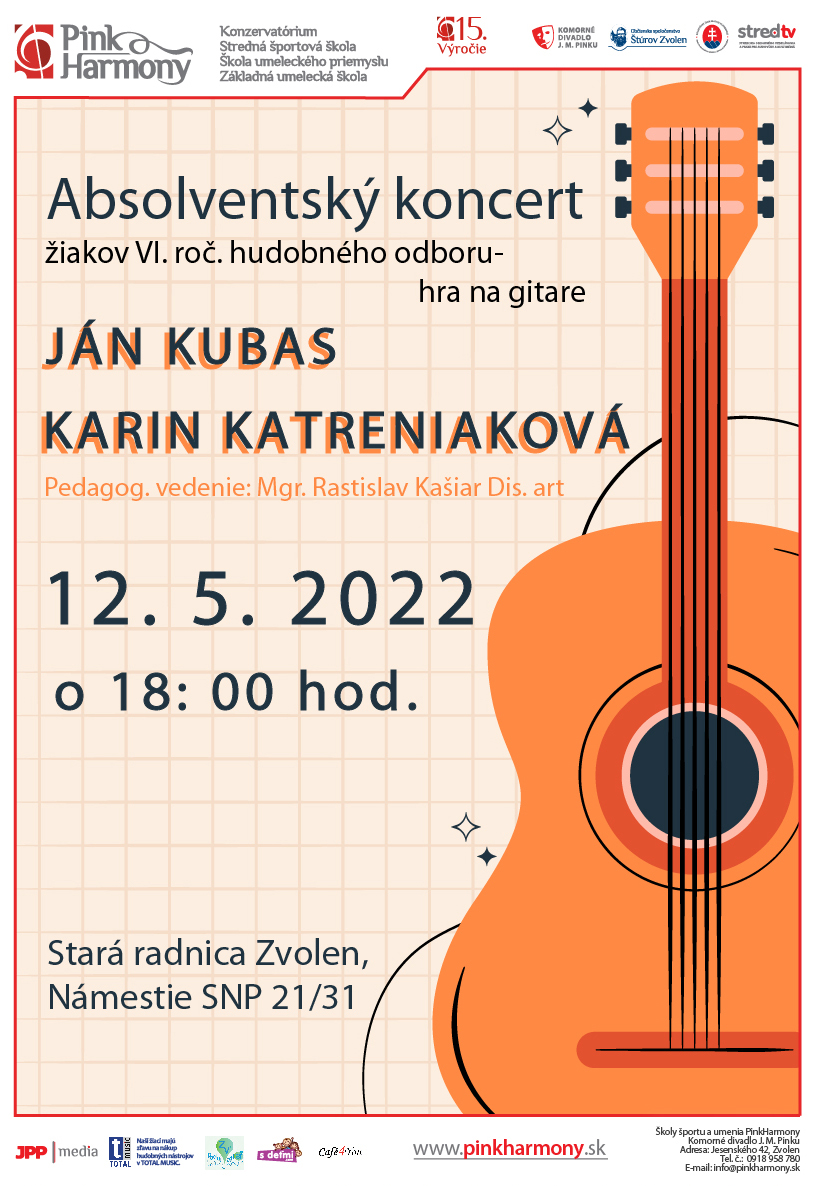 pozývame Vás na absolventský koncert žiakov VI. ročníka hudobného odboru. Už tento štvrtok 12. 5. 2022 o 18:00 hod. V Starej radnici vo Zvolene. Tešíme sa na Vás.