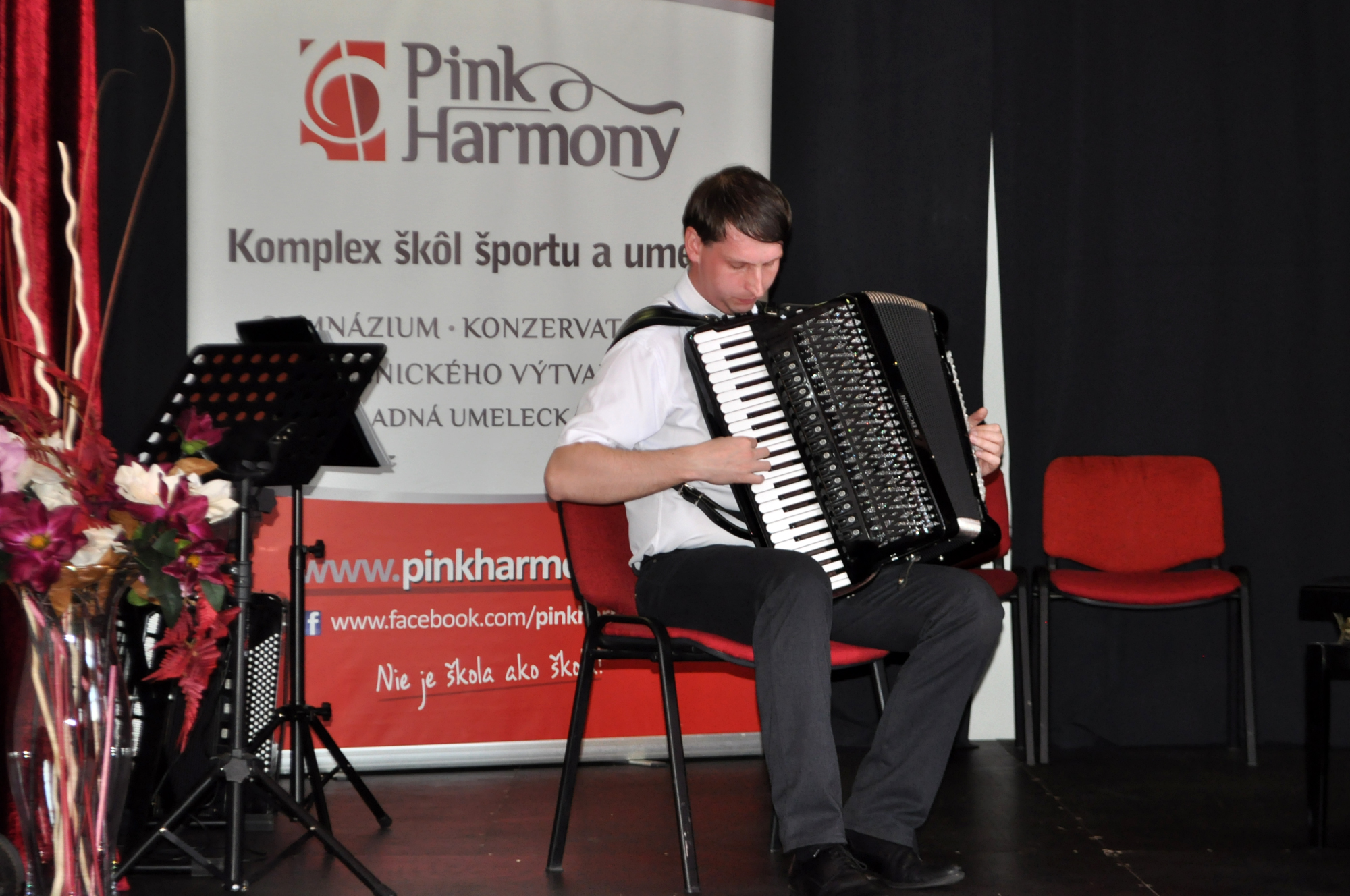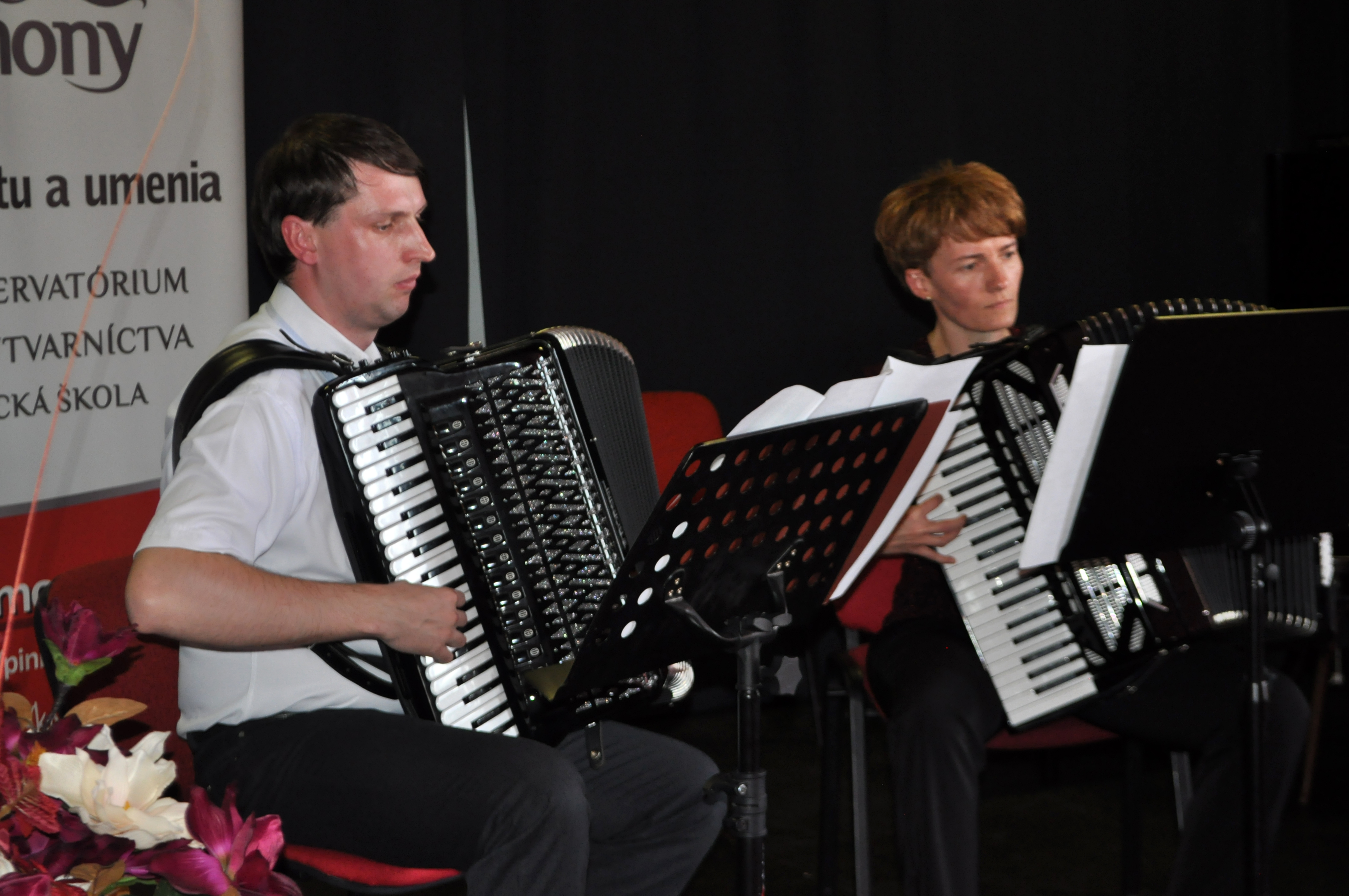 Zábery z absolventského koncertu žiakov VI. ročníka Konzervatória PinkHarmony Alexandra Očkajáka a Márie Krahulcovej pod pedagogickým vedením Mgr. art. Mariána Švoňavu.