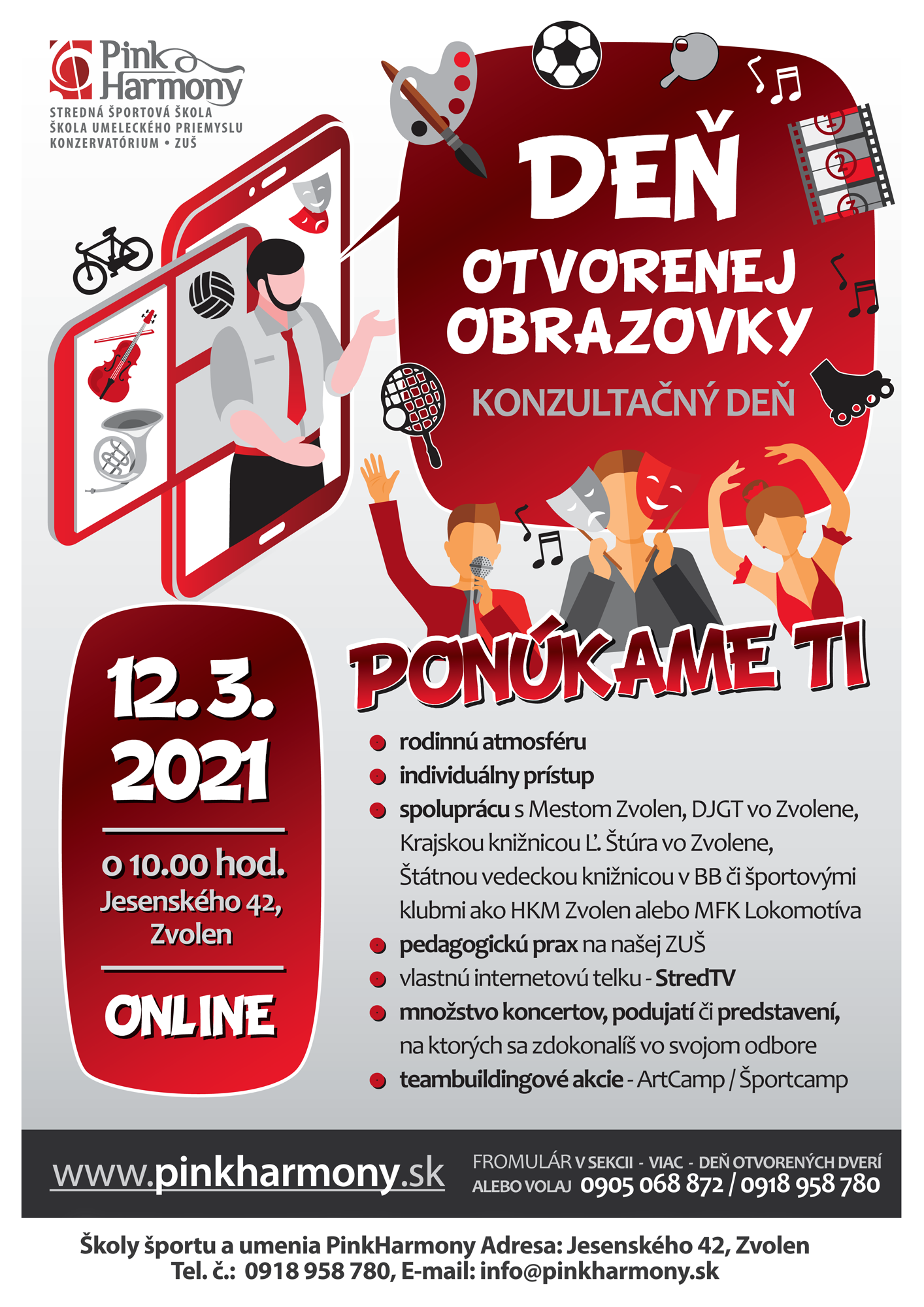 Online brány našich dverí a vašich obrazoviek sa otvárajú o týždeň v piatok 12. 3. 2021 o 10:00 hod. Nenechajte si tento Konzultačný deň ujsť a získajte všetky potrebné informácie týkajúce sa štúdia na našich troch stredných školách.