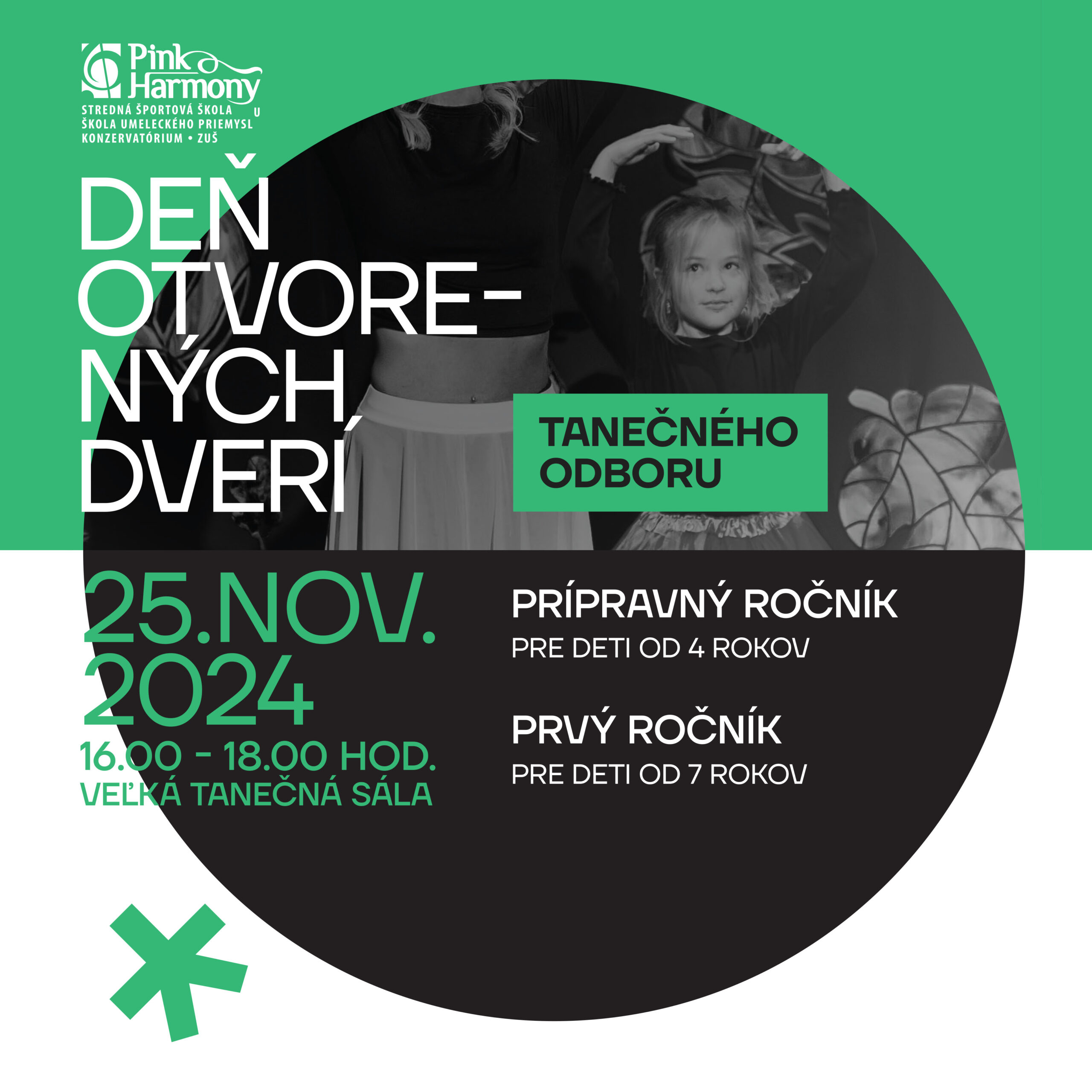 Rád/rada tancuješ a ešte nie si v žiadnej ZUŠke? Príď do tej našej! Otvorené dvere budeme mať už 25. novembra od 16:00 do 18:00. Tešíme sa na Teba!