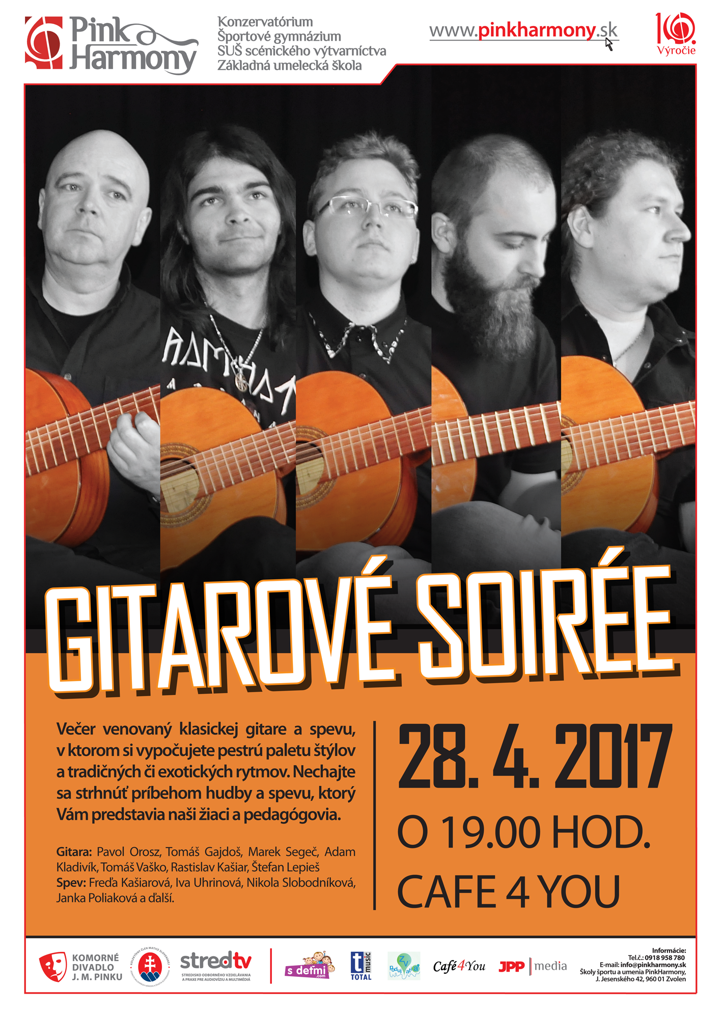 Večer venovaný klasickej gitare a spevu,v ktorom si vypočujete pestrú paletu štýlov a tradičných či exotických rytmov. Nechajte sa strhnúť príbehom hudby a spevu, ktorý Vám predstavia naši žiaci a pedagógovia.