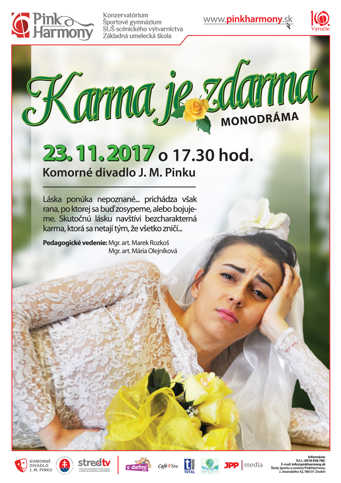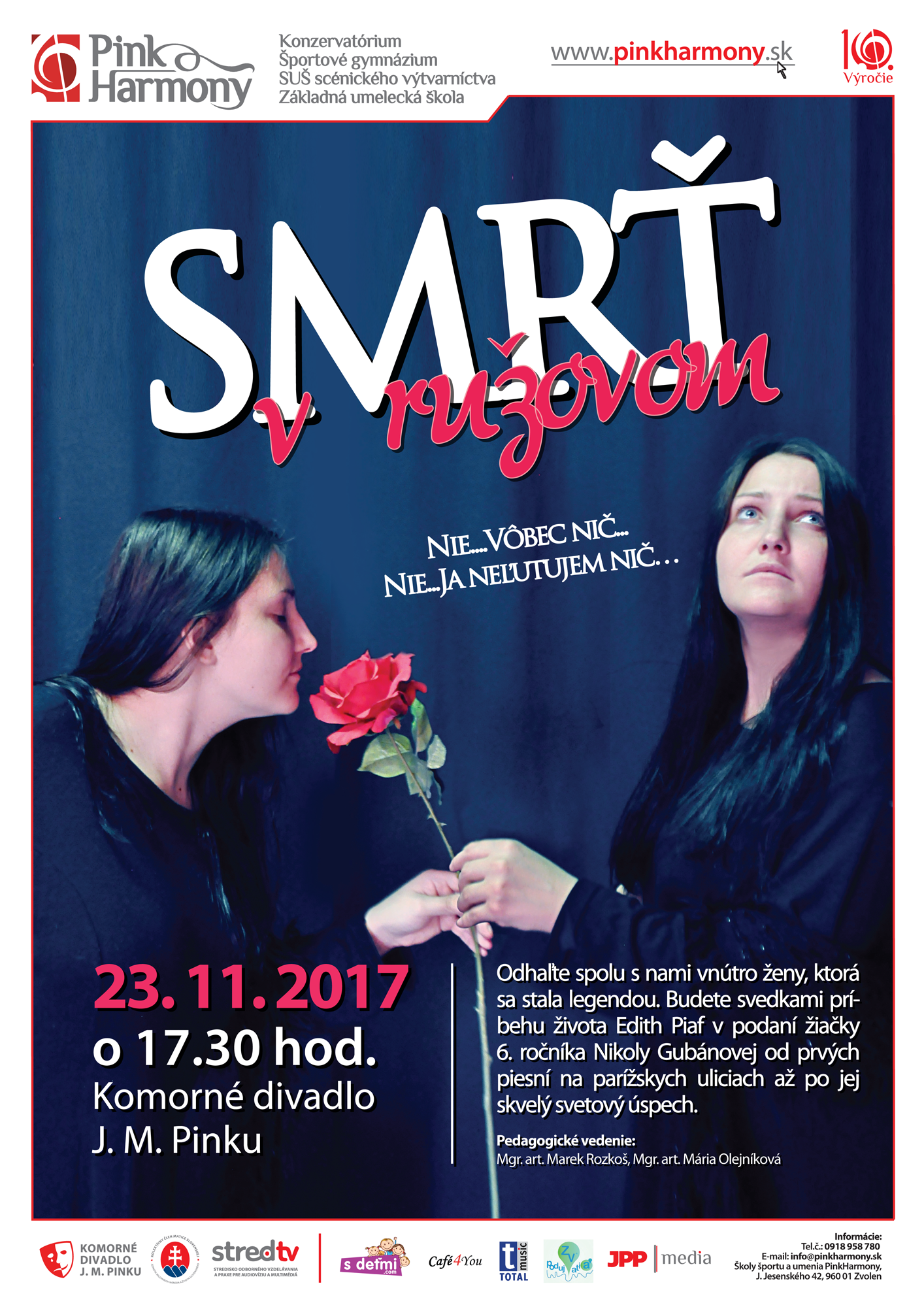 Pozývame Vás na pokračovanie divadelnej série MONODRÁMY, v ktorých sa Vám predstaví Nikola Gubánová ako Edith Piaf v monodráme s názvom Smrť v ružovom a Ivana Uhrinová Vám vo svojej monodráme Karma je zdarma ukáže že s osud vie byť veľmi vrtkavý.