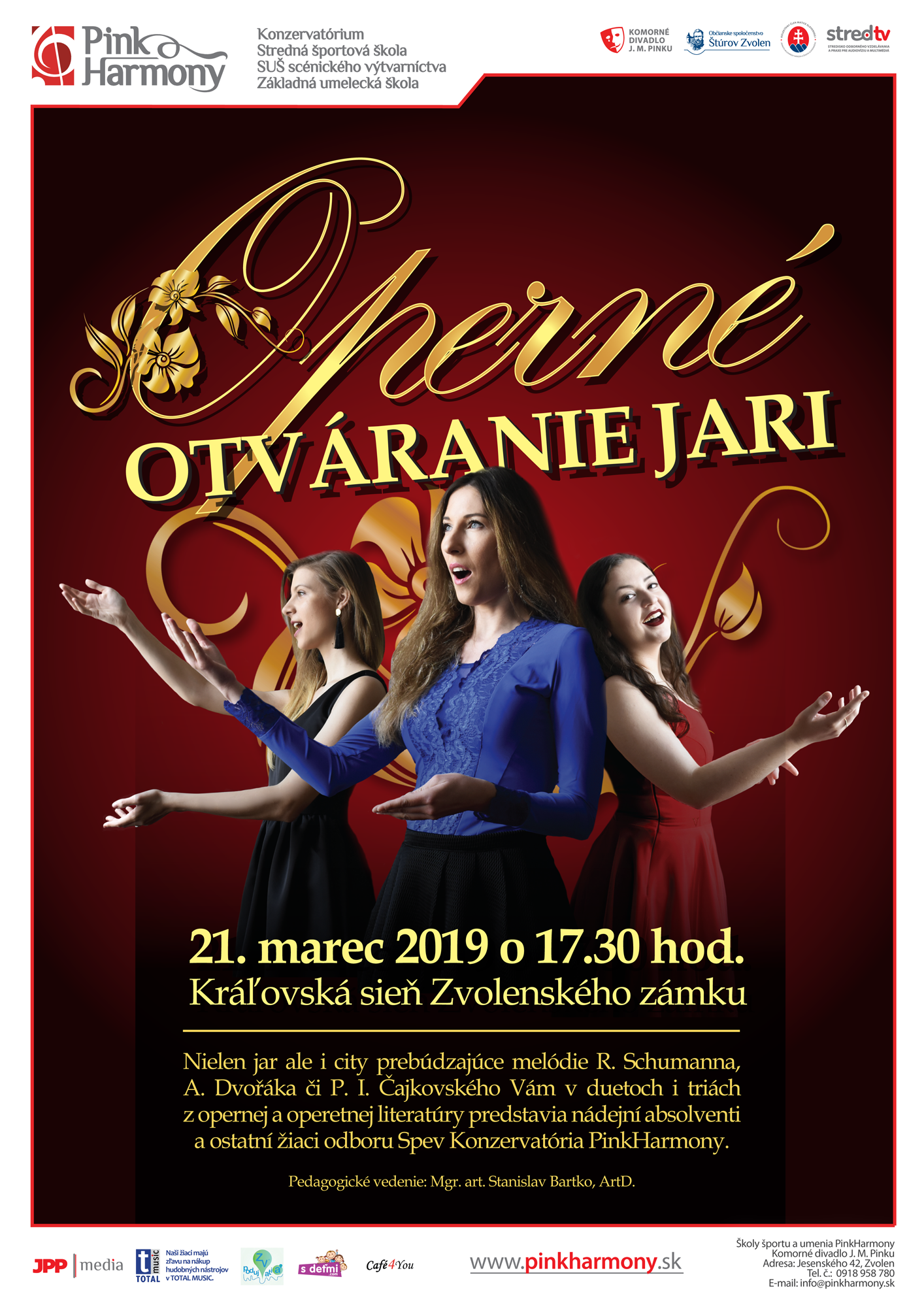 V dielach R. Schumanna, A. Dvořáka či P. I. Čajkovského, v duetoch i triách z opernej a operetnej literatúry zaznejú aj hlasy žiačok štvrtého ročníka odboru Spev Konzervatória PinkHarmony: Bianky Schallerovej a Ireny Chovanovej.