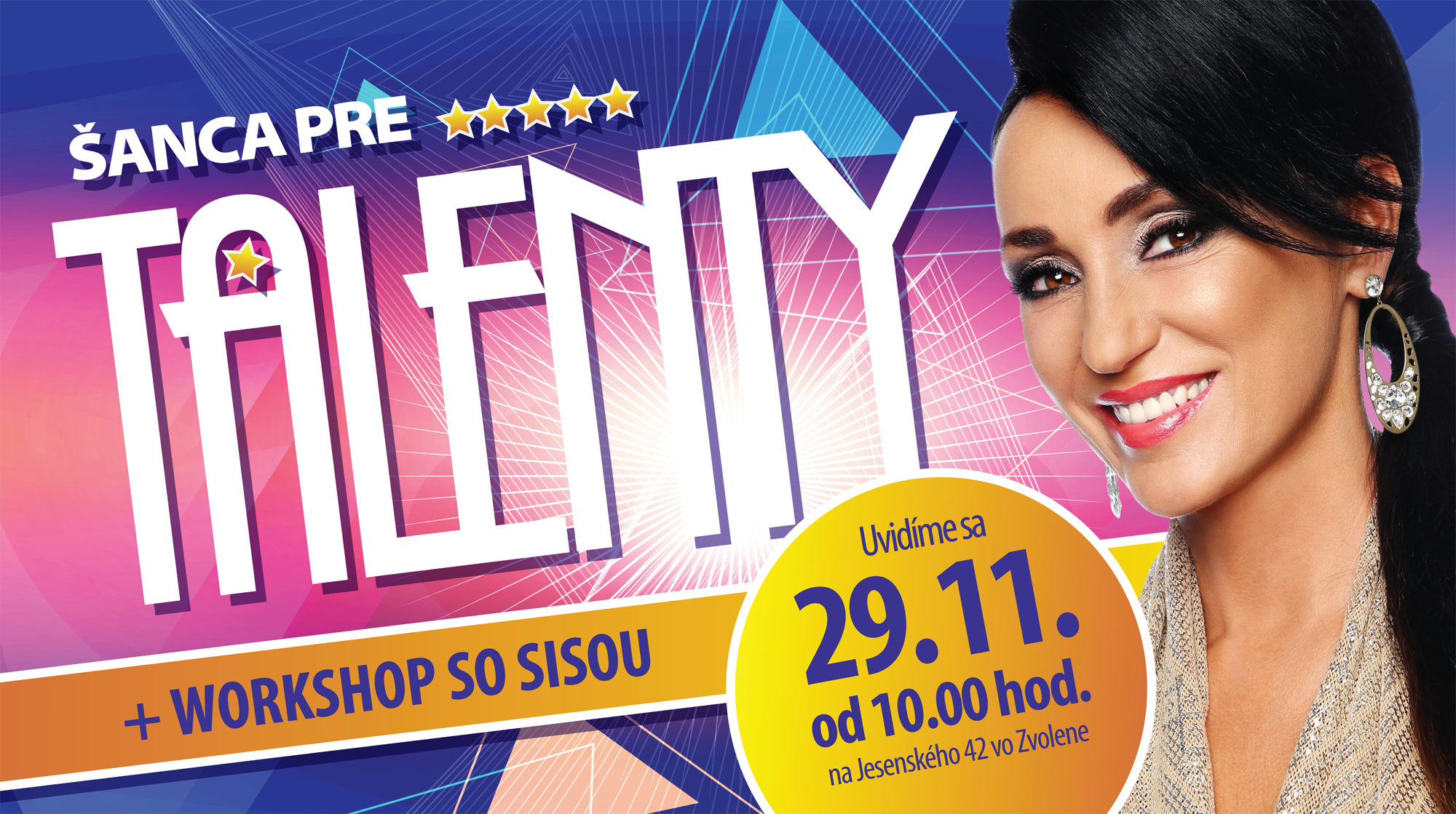 Súčasťou podujatia je aj exkluzívny SPEVÁCKY WORKSHOP so SISOU SKLOVSKOU, ktorý sa uskutoční od 13:00 do 17:00 hod. Je určený všetkým záujemcom. V prípade záujmu o WORKSHOP so SISOU vyplňte prosím osobitnú prihlášku.