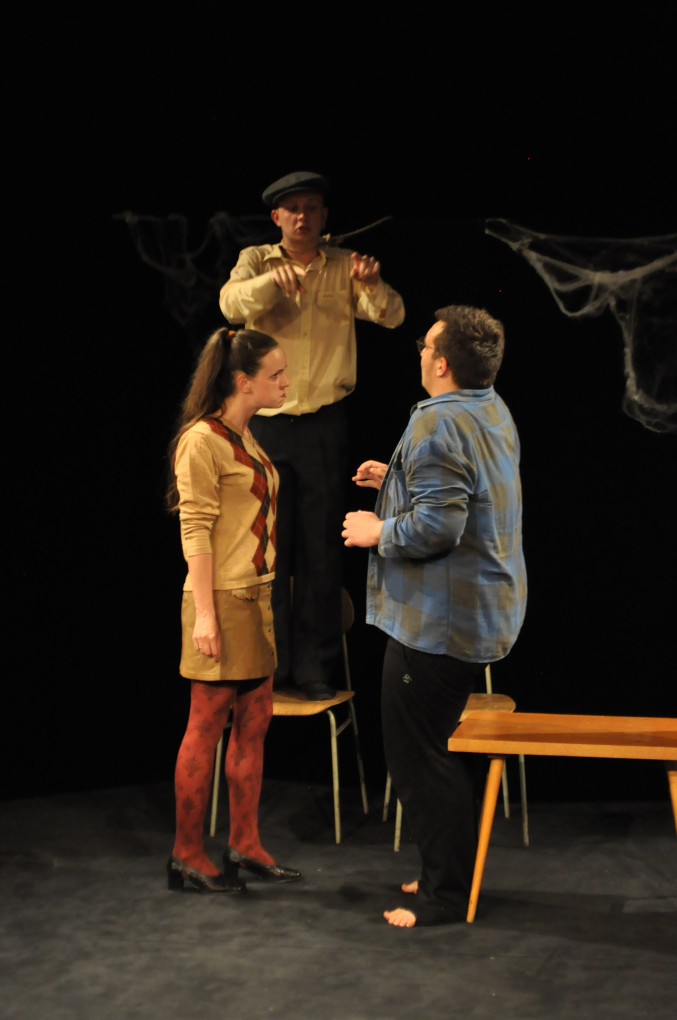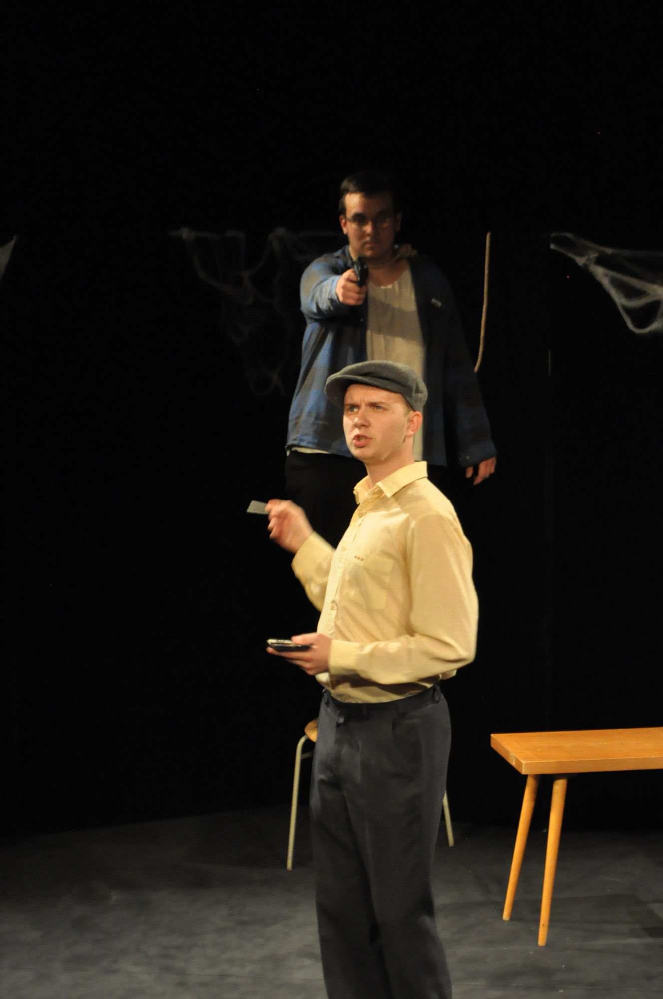 V stredu 31. 5. 2017 ste mali možnosť prísť do DJGT na fantastické predstavenie z dielne nášho konzervatória – Slučka pre dvoch. Jedná sa o tragikomedické maturitné predstavenie o ľúbostnom trojuholníku s hlavným obsadením v podobe žiakov IV. ročníka – Beáty Korčekovej, Mareka Kováča a Christiána Saba, ktorí podali skvelé herecké výkony. Predstavenie sa celý čas nesie v tóne úsmevných situácií – obsahuje nadčasový, všeľudský rozmer s témou neustále sviežou a aktuálnou. My našim mladým hercom ale aj ich pedagógom – Mgr. art. Vernoike Čépeovej a Mgr. art. Marekovi Rozkošovi – gratulujeme a tešíme sa na ďalšie predstavenie.