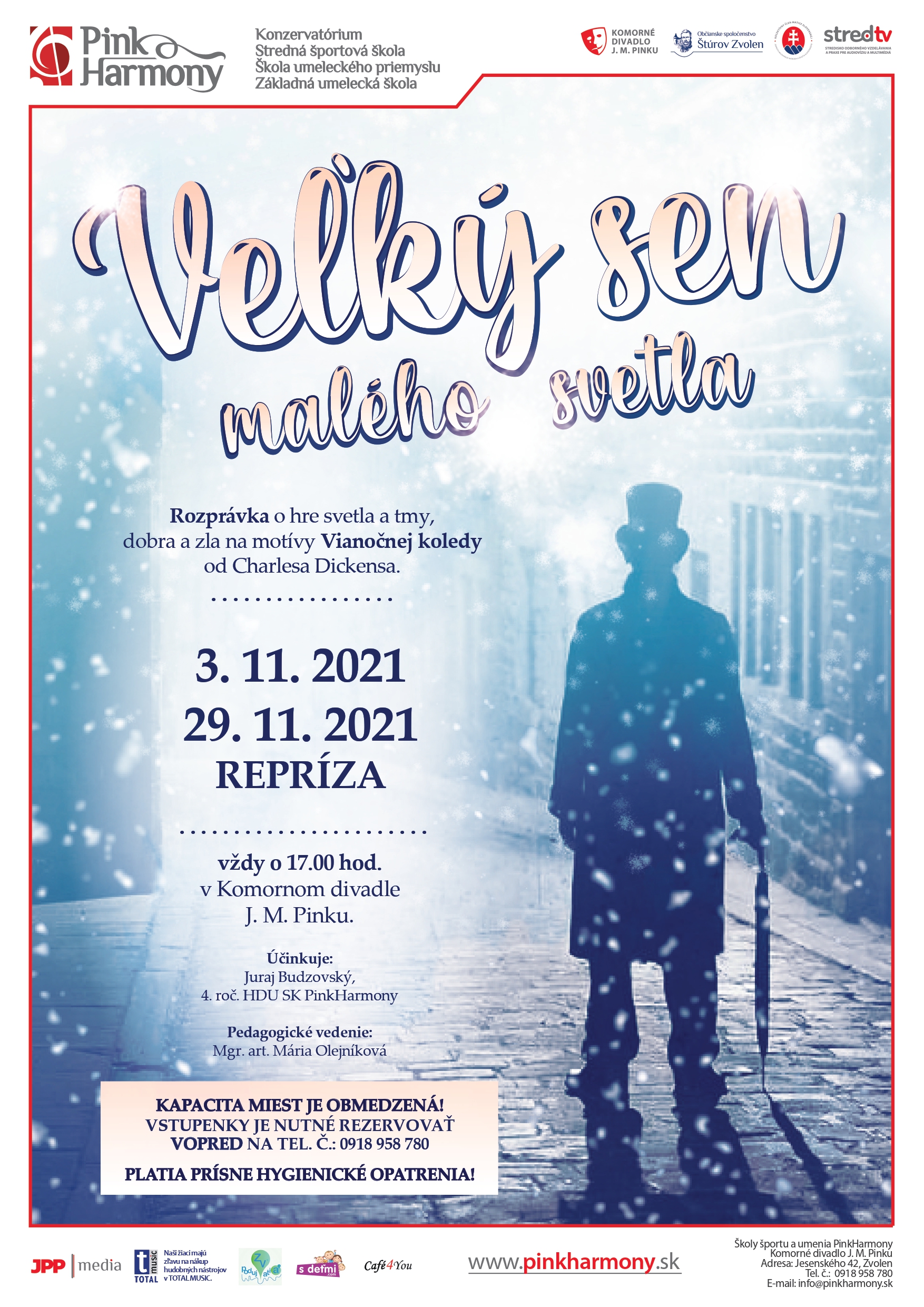 Pre všetkých rozprávkovo naladených dobrých ľudí sme pripravili reprízu jedinečného príbehu o hre svetla a tmy, dobra a zla na motívy Vianočnej koledy od Charlesa Dickensa v podaní žiaka 4. ročníka HDU Konzervatória PinkHarmony – Juraja Budzovského.