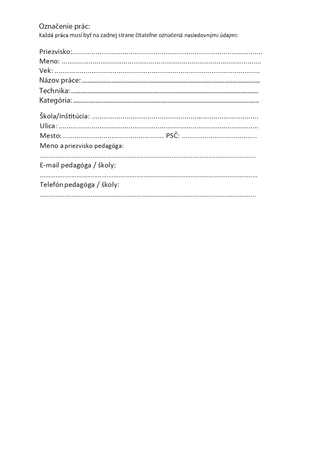 Uzávierka výtvarných prác je do 30.11.2021, práce je potrebné označiť priloženým štítkom.